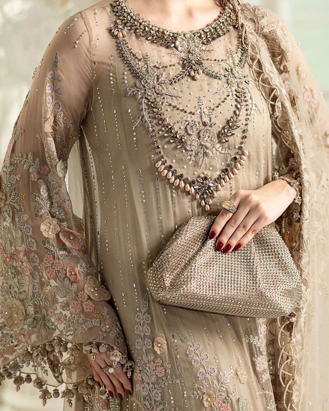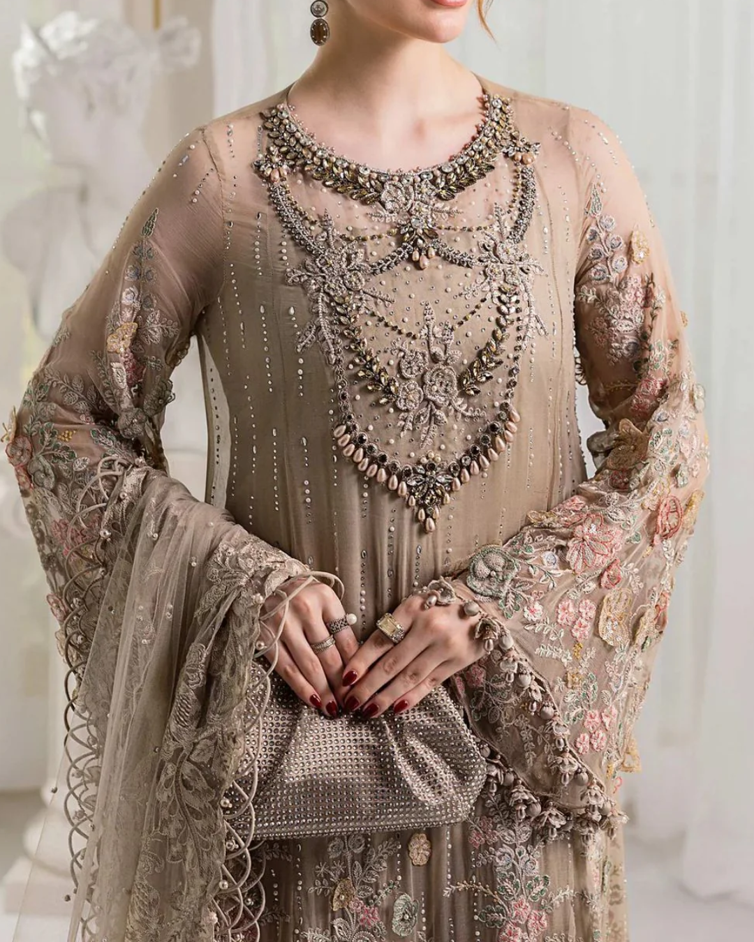 - Side Panels (Right & Left I): Elegant embroidered chiffon detailing